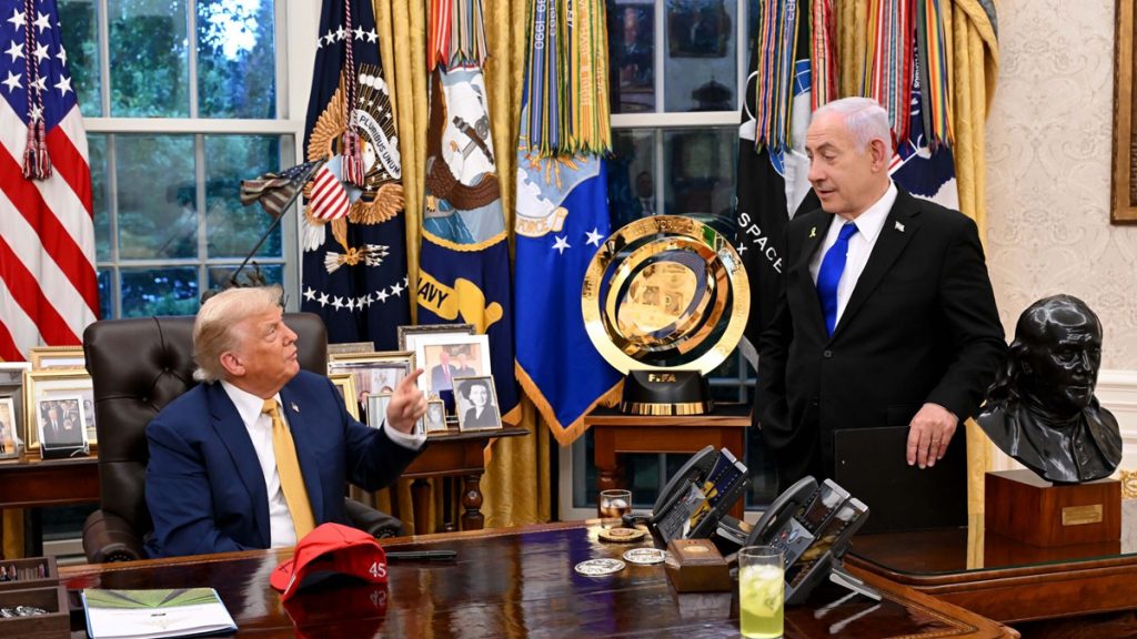 দুই দিনের ব্যবধানে দ্বিতীয়বারের মতো মার্কিন প্রেসিডেন্ট ডোনাল্ড ট্রাম্পের সঙ্গে বৈঠক করলেন ইসরায়েলের প্রধানমন্ত্রী বেনিয়ামিন নেতানিয়াহু, তবে বৈঠক শেষে হোয়াইট হাউস থেকে কোনো চুক্তি বা সমঝোতার ঘোষণা ছাড়াই চুপচাপ ফিরে গেছেন তিনি। গাজায় যুদ্ধবিরতি ও জিম্মি মুক্তির মতো গুরুত্বপূর্ণ ইস্যু ছিল আলোচনার কেন্দ্রবিন্দুতে, তবে আশানুরূপ ফল আসেনি। বৈঠকটি এমন সময় হয় যখন মার্কিন বিশেষ দূত স্টিভ উইটকফ দোহায় হামাস-ইসরায়েল আলোচনা পরিচালনার জন্য প্রস্তুত ছিলেন, কিন্তু আলোচনার কোনো অগ্রগতি না হওয়ায় তার সফর পেছানো হয়েছে।