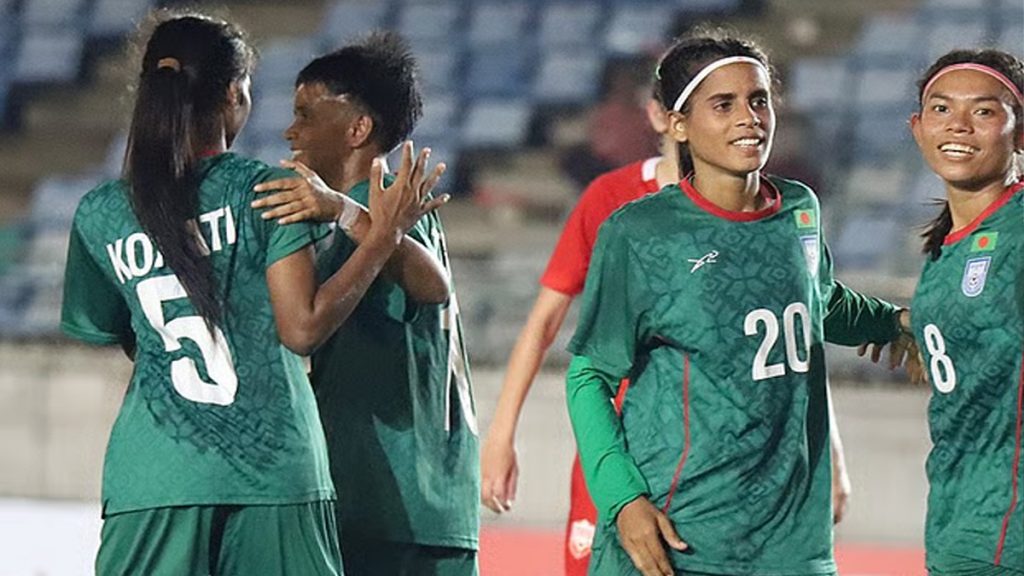 এএফসি নারী এশিয়ান কাপ বাছাইপর্বে দুর্দান্ত পারফরম্যান্স উপহার দিয়েছে বাংলাদেশ নারী ফুটবল দল। রোববার (২৯ জুন) মিয়ানমারের ইয়াঙ্গুনে থুউন্না স্টেডিয়ামে অনুষ্ঠিত ম্যাচে র্যাংকিংয়ে অনেক এগিয়ে থাকা বাহরাইনকে ৭-০ গোলে উড়িয়ে দেয় পিটার বাটলারের শিষ্যরা।