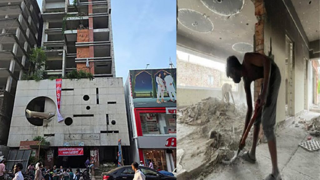 ঘটনার প্রায় এক বছর পর ভবনটির সামনে হঠাৎই ঝুলছে একটি ব্যানার—‘আন্তর্জাতিক ফ্যাসিজম ও গণহত্যা গবেষণা ইনস্টিটিউট’। একইসঙ্গে শুরু হয়েছে পরিচ্ছন্নতার কাজ, তবে কে এই উদ্যোগ নিয়েছে, তা কেউ নিশ্চিতভাবে বলতে পারছে না। শুক্রবার (২৫ জুলাই) সরেজমিনে দেখা যায়, একটি দল নিচতলায় জমে থাকা নোংরা পানি সরাচ্ছে, কয়েকজন ভবনের ময়লা পরিষ্কার করছেন। ‘নসু’ নামে ভবনে থাকা এক ভাসমান ব্যক্তি জানান, তিনিসহ ১২ জন শ্রমিক দৈনিক মজুরিতে কাজ করছেন এবং কাজের নির্দেশ দিচ্ছে ‘ছাত্ররা’। এই ভবনের পুঙ্খানুপুঙ্খ লুণ্ঠনের বিবরণ দিতে গিয়ে তিনি বলেন, “সব কিছুই নিয়ে গেছে মানুষজন—টোকাই, মাদকাসক্ত এমনকি ভদ্রলোকও।”