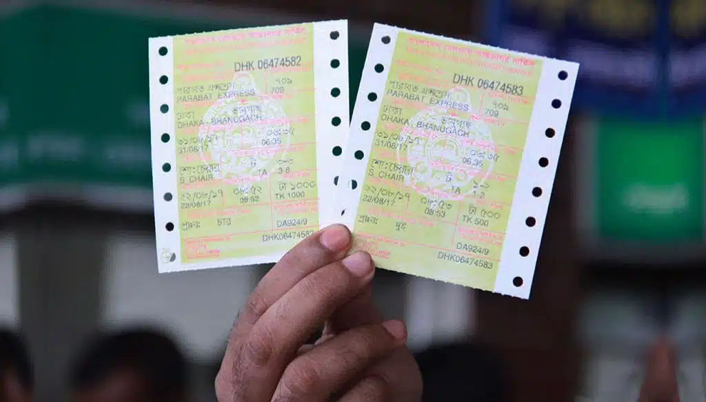 প্রিন্ট করা ই-টিকিট ও ফটো আইডি নিয়ে যাত্রার আগে নির্ধারিত স্টেশন থেকে চূড়ান্ত টিকিট সংগ্রহ করতে হবে।