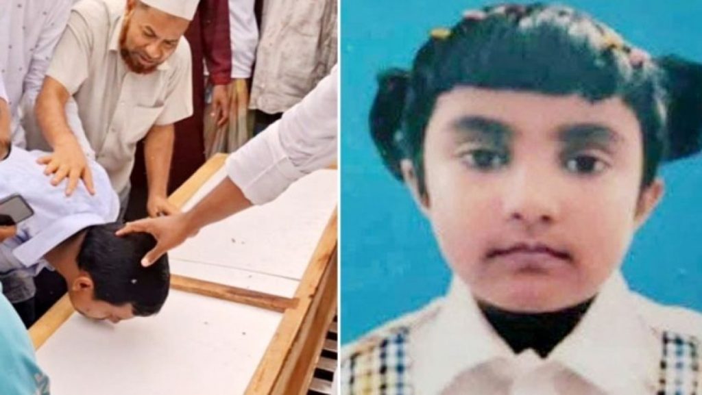 বাবার কপালে চুমু দিয়ে প্রতিদিন স্কুলে যেত ছোট্ট মেহেনাজ আফরি হুমায়রা (৯)। কিন্তু এবারের বিদায়টি চিরকালের। রাজধানীর উত্তরায় মাইলস্টোন স্কুল অ্যান্ড কলেজে বিমান বিধ্বস্তের মর্মান্তিক ঘটনায় নিহত হয় তৃতীয় শ্রেণির ছাত্রী মেহেনাজ। তার কফিনে বাবার শেষ চুমু, দাদার হাহাকার আর মায়ের নিস্তব্ধ কান্নায় ভারী হয়ে উঠেছিল টাঙ্গাইলের সখীপুর উপজেলার হতেয়া কেরানীপাড়া গ্রামের আকাশ। মঙ্গলবার (২২ জুলাই) সকালে সেখানে দাফনের জন্য পৌঁছায় মেহেনাজের মরদেহ, যেখানে প্রতিটি মুহূর্ত ছিল অশ্রুসিক্ত।