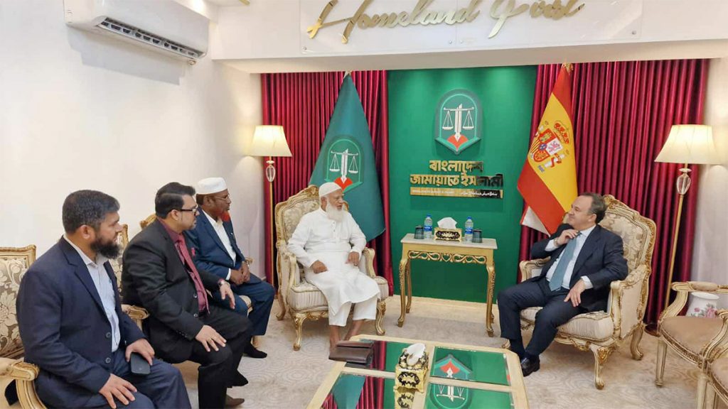 বাংলাদেশ জামায়াতে ইসলামীর আমির ডা. শফিকুর রহমানের সঙ্গে বাংলাদেশে নিযুক্ত স্পেনের রাষ্ট্রদূত গ্যাব্রিয়েল সিস্তিয়াগা ওচোয়া ডি চিনচেত্রু সৌজন্য সাক্ষাৎ করেছেন।