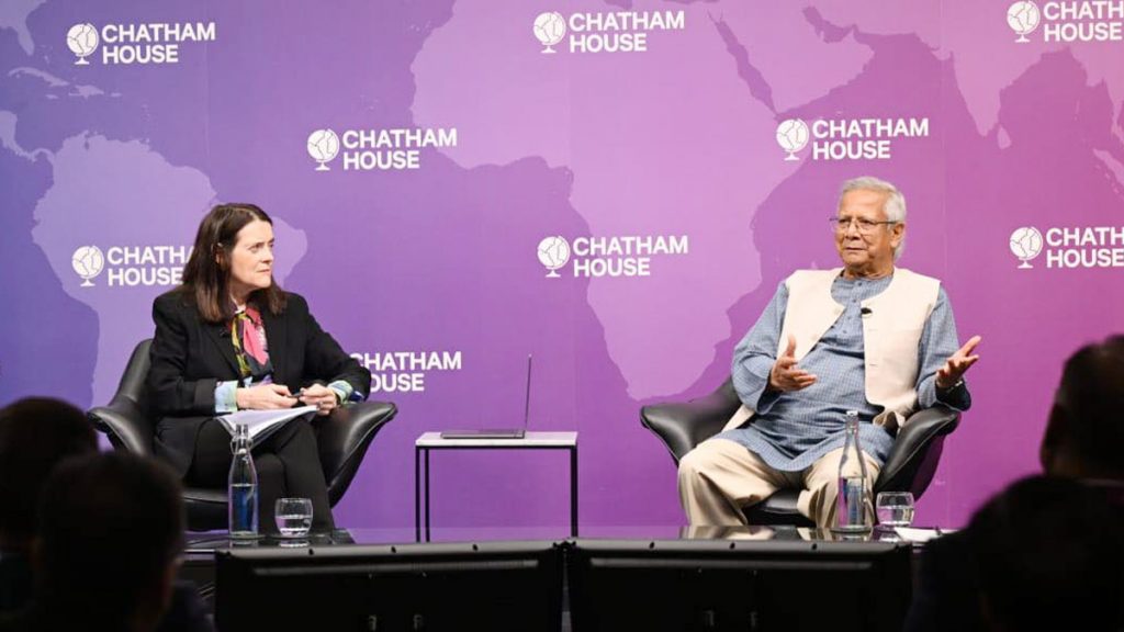 ড. ইউনূসের বক্তব্যে দায়িত্ব পালনের যুক্তি ও দেশের অর্থনৈতিক বাস্তবতা—লন্ডনে চ্যাথাম হাউজে সংবাদ সংলাপ