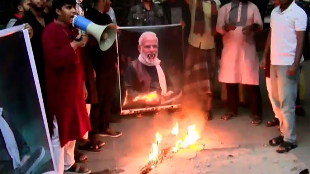 বাংলাদেশের বিজয় দিবসকে ভারতের বিজয় দিবস উল্লেখ করায় দেশটির প্রধানমন্ত্রী নরেন্দ্র মোদির কুশপুত্তলিকা পুড়িয়ে প্রতিবাদ জানিয়েছেন ঢাকা বিশ্ববিদ্যালয়ের একদল শিক্ষার্থী। মঙ্গলবার (১৬ ডিসেম্বর) সন্ধ্যায় ঢাকা বিশ্ববিদ্যালয়ের মধুর ক্যান্টিনের সামনে আধিপত্যবাদবিরোধী ব্যানারে কুশপুত্তলিকা পোড়ানো হয়।