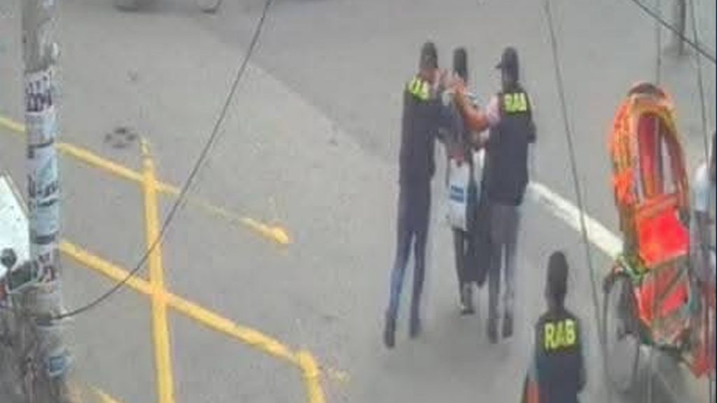 সিসিটিভি ফুটেজে দেখা গেছে, মোটরসাইকেলে করে ব্যাংকে যাচ্ছিলেন ভুক্তভোগী। হঠাৎ একটি কালো রঙের মাইক্রোবাস এসে তার গতি রোধ করে। এরপর র্যাবের পোশাক পরা কয়েকজন ব্যক্তি গাড়ি থেকে নেমে ভুক্তভোগীকে জোরপূর্বক আটকানোর চেষ্টা করে। দৌড়ে পালানোর চেষ্টা করলেও একপর্যায়ে তাকে ধরে ফেলে এবং গাড়িতে তুলে নিয়ে যায়।
