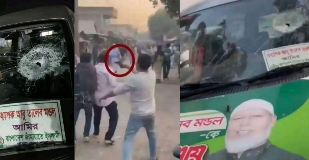 জামায়াত প্রার্থীর প্রচারণায় বিএনপির দফায় দফায় হামলা-গুলিবর্ষণ, শতাধিক গাড়ি ভাঙচুর