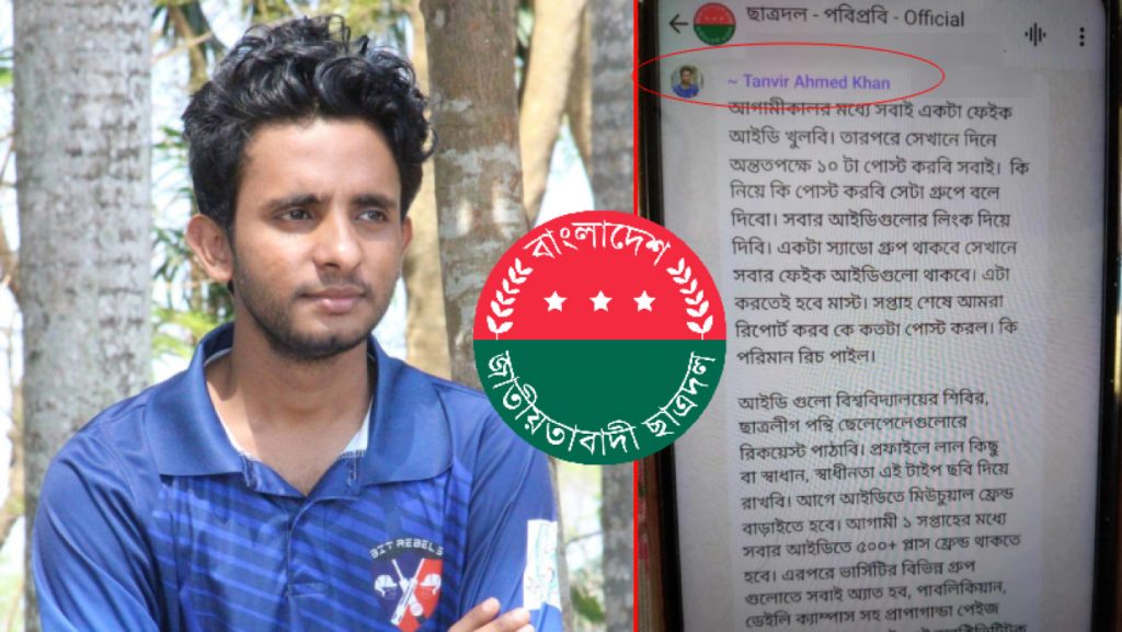 ভাইরাল স্ক্রিনশটে দেখা যায়, ‘ছাত্রদল পবিপ্রবি অফিসিয়াল’ নামের একটি হোয়াটসঅ্যাপ গ্রুপে তানভীর লিখেছেন, “আগামীকালর মধ্যে সবাই একটা ফেইক আইডি খুলবি। তারপর দিনে অন্তত ১০টা পোস্ট করবি। কী পোস্ট করবি সেটা গ্রুপে বলে দিব। সবার আইডির লিংক দিতে হবে।” শুধু তাই নয়, ফেক আইডি ব্যবস্থাপনার জন্য ‘শ্যাডো গ্রুপ’ খোলা হবে বলেও জানানো হয় বার্তায়। তানভীর লেখেন, “এটা করতেই হবে মাস্ট। সপ্তাহ শেষে রিপোর্ট করব কে কত পোস্ট করেছে, কতটা রিচ পেয়েছে।”