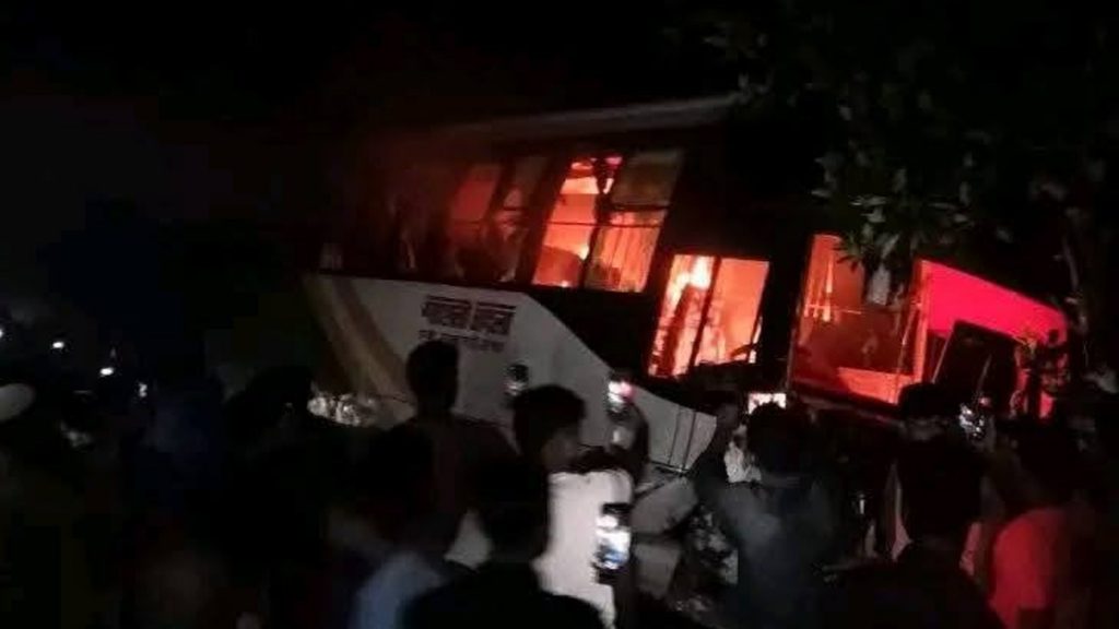 প্রথম দুর্ঘটনাটি ঘটে শুক্রবার (২০ জুন) রাত ৮টার দিকে ফুলপুর পৌরসভার কাজিয়াকান্দা ইন্দিরাপাড় বাঁশবাড়ি এলাকায়। পুলিশ জানায়, হালুয়াঘাট থেকে ঢাকাগামী শ্যামলী বাংলা পরিবহনের একটি যাত্রীবাহী বাসের সঙ্গে বিপরীত দিক থেকে আসা একটি মাহিন্দ্রার মুখোমুখি সংঘর্ষ হয়। এতে ঘটনাস্থলেই মাহিন্দ্রায় থাকা ৫ জন নিহত হন। দুর্ঘটনার পর উত্তেজিত জনতা ক্ষোভে বাসটিতে আগুন ধরিয়ে দেয়।