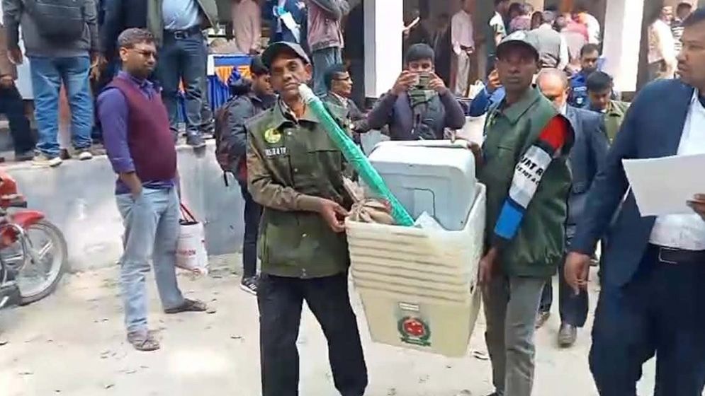 বুধবার (১১ ফেব্রুয়ারি) সকাল থেকে প্রিজাইডিং ও সহকারী প্রিজাইডিং কর্মকর্তাদের কাছে এসব সরঞ্জাম হস্তান্তর শুরু হয়। সংসদ ও গণভোটের ব্যালট পেপার, স্বচ্ছ ব্যালট বক্স, অমোচনীয় কালিসহ প্রায় ২৪ প্রকারের সরঞ্জাম  তারা বুঝে নেন।